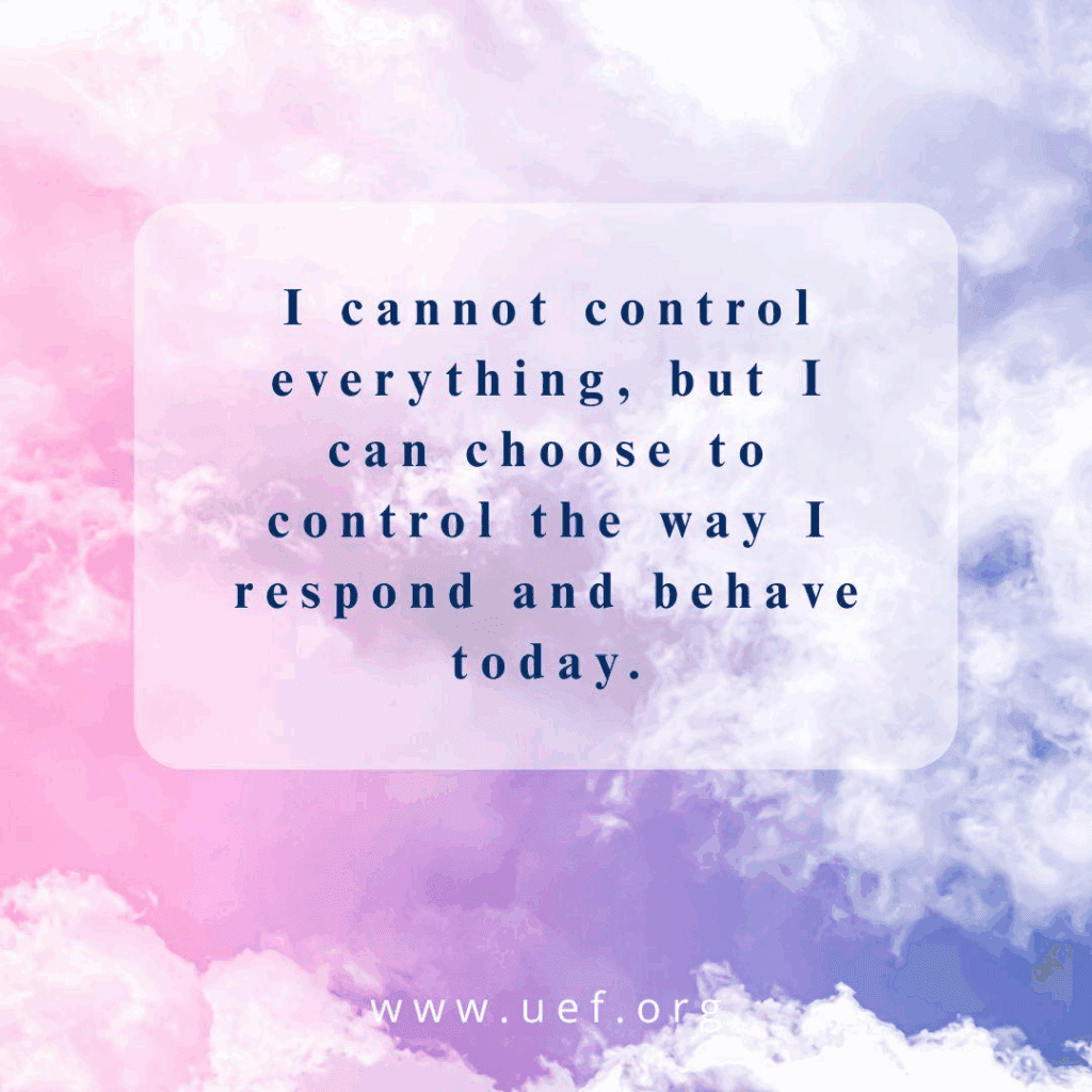- I cannot control everything, but I can choose to control the way I respond and behave today.