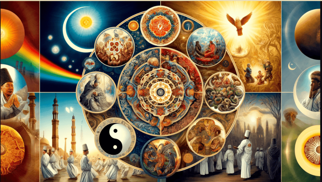 Circular imagery is central to many mystical traditions, with the Mandala being a well-known example. Sufism, the mystical branch of Islam, incorporates circularity into its spiritual practices. The most iconic example of this is the Whirling Dervishes who spin in circles, symbolizing the cyclical journey of the soul in its pursuit of divine unity and enlightenment. The Yin-Yang symbol of Taoism, illustrates the interconnected and cyclical nature of the universe, consisting of two opposing and complementary halves, which represent dualistic aspects of reality.